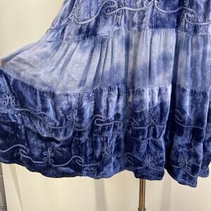 Vintage Velvet Midi Tiered Dress Blue Tie Dye Whimsical Willow Rosenburg Buffy Vampire Slayer People of the Labyrinth Style Y2K