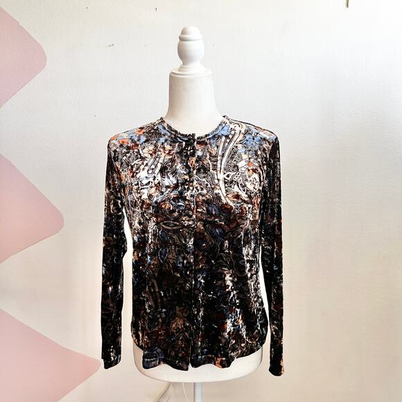 Vintage Velvet Paisley Button Up Top 90s 2000s Boho Retro Indie Sleaze Small