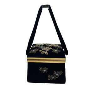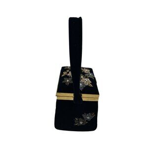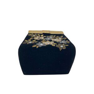 *Vintage Velvet Purse Floral Gold Beaded Square Snap Close Opera Cocktail Bag