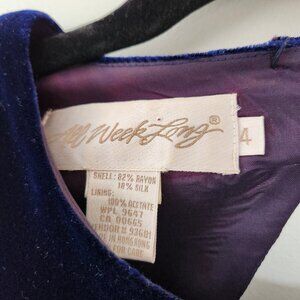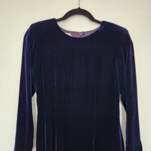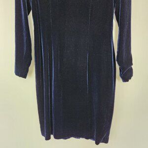 Vintage Velvet Velour Long Sleeve Mini Dress Size 4 Keyhole Gold Button Back