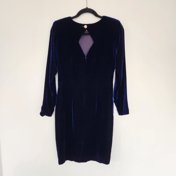 Vintage Velvet Velour Long Sleeve Mini Dress Size 4 Keyhole Gold Button Back
