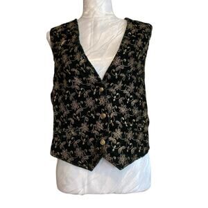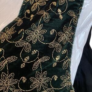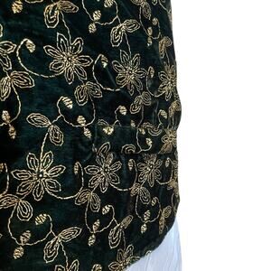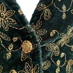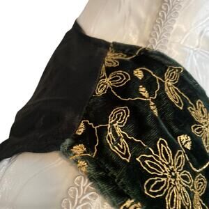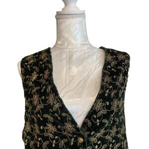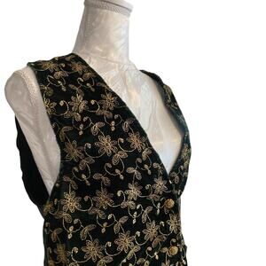 Vintage Velvet Vest Womens Sz Medium Green Gold Embroidered Victorian Romantic