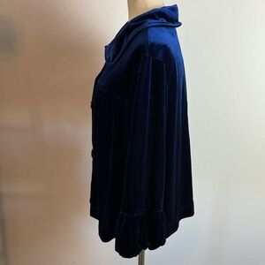 Ruched puffy sleeve cuffs velvet jacket topper extra large buttons closure