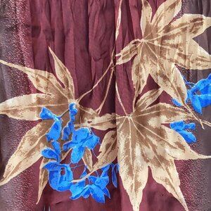 Gorgeous Brown & Tan Leaves with Blue Floral Blossoms and Rust to Brown Ombre Background