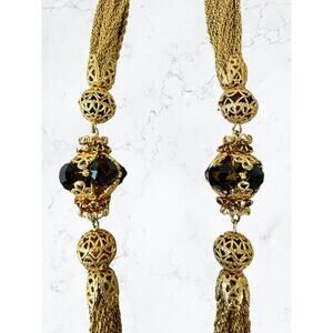 Vintage Vendôme 1950s/60s Gold Mesh Filigree Necklace and Glass Beads