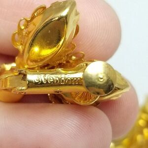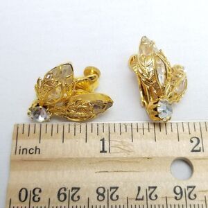 Vintage Vendome Rhinestone Clip On Earrings, Gold Tone Leaf Shape, Estate
