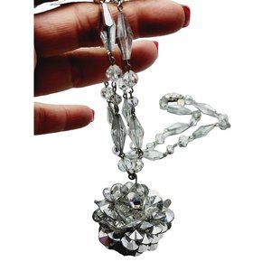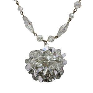 Vintage Vendome Signed Elongated Mirrored Faceted Crystal Huge Sphere Ball Necklace (A1164)