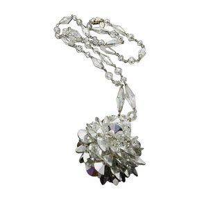 Vintage Vendome Signed Elongated Mirrored Faceted Crystal Huge Sphere Necklace