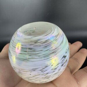 Vintage Venetian Glass Paperweight Figure Italian Glass Iridescent White Swirl