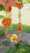This stunning art glass necklace features large filigree capped disc shaped & round orange & clear art glass beads with gold dust swirls, graduated gold tone metal beads & a open gold tone flower linked chain. Has a barrel clasp closure. Beautifully crafted piece.