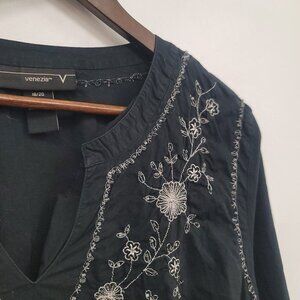 Vintage Venezia Womens Long Sleeve Embroidered Top Size 18 Witchy Boho Festival