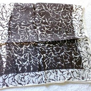 Vintage Vera Neumann Geometric Dark Chocolate White Scarf. Scarf is signed Ladybug Vera © Hand rolled edge. Approximately 43" x 14". Non-smoking. In lovely vintage condition.