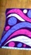 Every vintage collector has a Vera. "All silk hand rolled made in Japan" the tags says. I looked up to try to find what era it was from, best I could do was "60s - 70s" based on the large "V" in her signature, the copyright symbol and lack of polyester in the fabric. The colors are pink, purple and white in a fun design. The scarf is approx 15" by 64". The hand rolling seam is undone in one spot that I could find and a whisp of the the backing on the tag but it is secured( both pictured), and the white area has some dye ghosting but it is hard to see.
