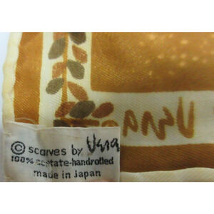 This Vintage Vera Neumann Scarf is a unique and stylish accessory that exudes elegance and charm. Made of 100% acetate made in Japan, this 26” square scarf features a timeless brown paisley design that is perfect for everyday wear. Signed by the renowned brand Vera Neumann, this original piece is a must-have for any woman looking to add a touch of vintage sophistication to her outfit.