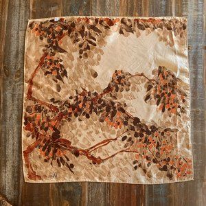 Vintage Vera Neumann Scarf Botanical Goldenrod Orange Cream Brown 26" Square