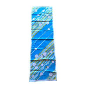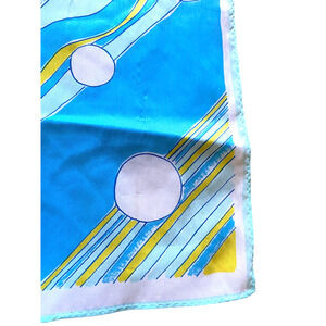 Vintage Vera Neumann Scarf Long White Blue Yellow Geometric Mod Chrome Disco