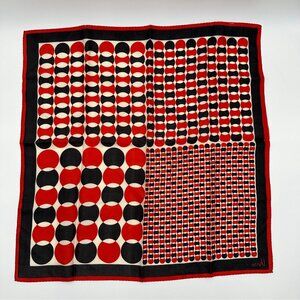 Vintage Vera Neumann Scarf Red Black White Geometric Circles 1960s Rolled Edge