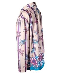 Vintage Vera Neumann Tunic Size 18 Striped Floral Tan Long Sleeves Polyester