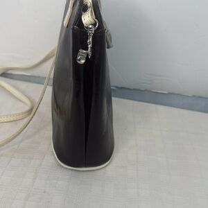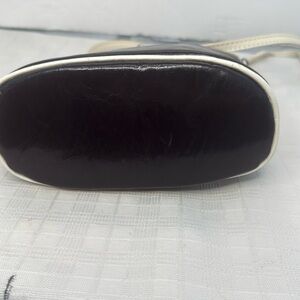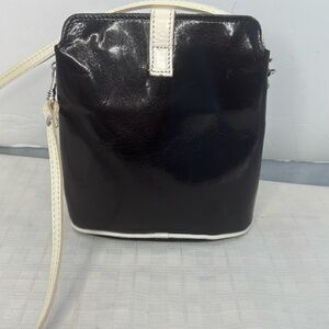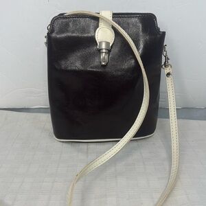 Vintage Vera Pelle Made in Italy Smooth Black with white trim Leather Small Bucket Bag Crossbody