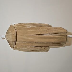 Vintage Vera Pelle Suede Italian Leather Coat Tan Hood Jacket M Pockets Outdoor
