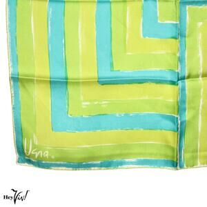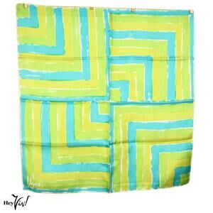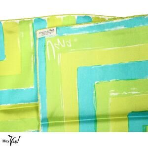 Vintage Vera Silk Scarf Green Geometric Design Handrolled USA
