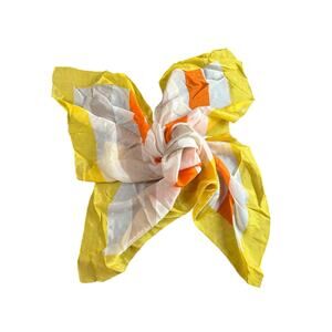 Vintage Vera- Yellow Orange- Striped- Silky Scarf- Vibrant Square- 31x31"