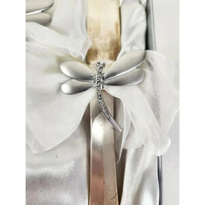 Add a touch of elegance to your wedding cake with this vintage Verdico silver plated cake server and knife set. The set includes a beautiful dragonfly-patterned knife and server, perfect for slicing and serving your cake with ease. The metal material ensures durability and longevity, while the silver color adds a touch of sophistication to any event.