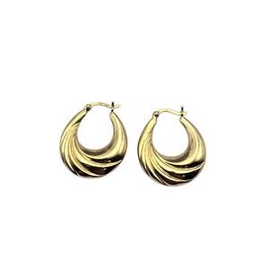 These elegant vintage hoop earrings are crafted from 925 sterling silver with a luxurious gold vermeil finish. Measuring 1 inch in length, they feature a unique twisted, crescent-like design that adds depth and texture to their polished, reflective surface. These are lightweight 3g. The hinged snap closure ensures a secure and comfortable fit, making them perfect for everyday wear or special occasions.