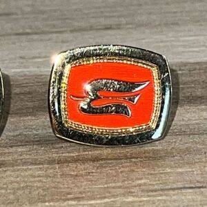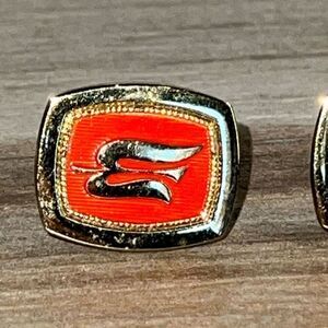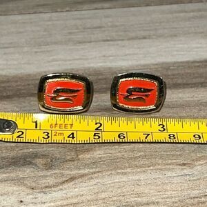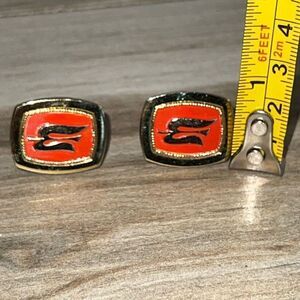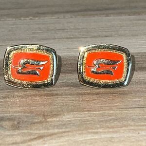 Vintage Vermeil Enamel Sterling Rectangular Cufflinks Gold Tone And Orange