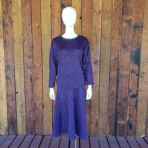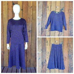 Vintage Vermillion 1960/1970's Purple Animal Print Sweater/Skirt Set. last photo is a accurate representation of the garments color. runs small. Can be worn as a set but also looks cute on their own, the sweater pairs nice with jeans and the skirt looks great with a black shirt and boots. has buttons on side of sweater and skirt