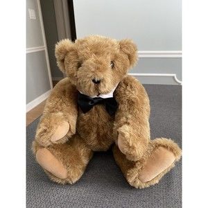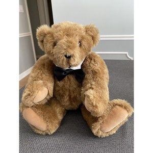 This vintage Vermont Teddy Bear is a charming addition to any collection. With jointed limbs and a height of 15 inches, this plush bear is perfect for all occasions. The bear is brown in color, and comes with a black bow tie for added elegance. The toy is an original Vermont Teddy Bear, made in the United States, and is suitable for both children and adults alike. Whether as a gift or a personal keepsake, this bear will make a wonderful addition to any home.
