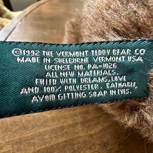 Vintage Vermont Teddy Bear Co. Plush Brown Bear Poseable