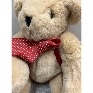 Vintage Vermont Teddy Bear Jointed with Red Vest and Bow 1987