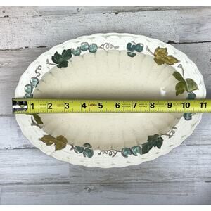 Vintage Vernon Ware Metlox Pottery California Vineyard Oval Serving Bowl 11". This serving bowl is in great vintage condition. Back shows some signs of wear. See our store for more pieces from this collection.