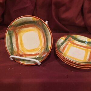 Vintage Vernonware Dessert / fruit bowl 5 1/2in dia shallow green, rust , yellow