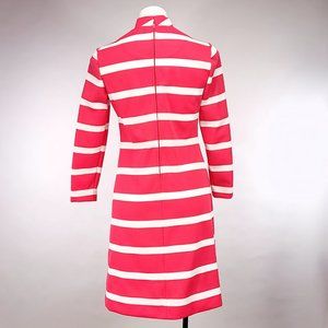 Vintage Verona Knits Women's Pink and White Striped Long Sleeved Dress with Long Vest