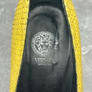 Versace Classic Python Chain Yellow Leather Pumps Size 37 Pointed Toe High Heels