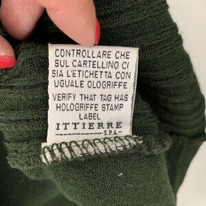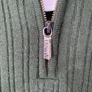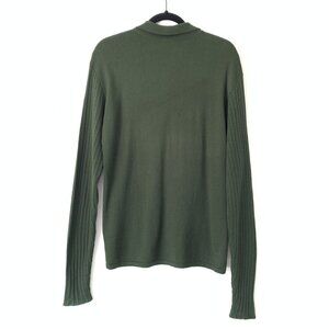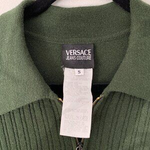 Vintage Versace Green Ribbed Quarter-Zip Knit Sweater Size S Brown Trim Wool