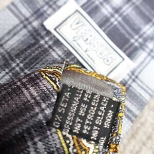 Vintage Versace Versus Tie Silk Gray Plaid Abstract Silk