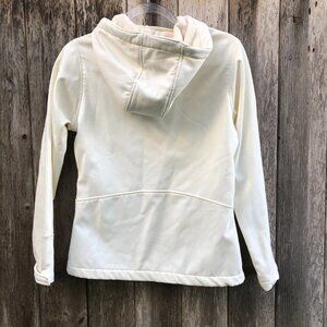 snow bunny, cream, off-white, ivory, ski bum, vertical '9, spring skiing, snow, ski jacket, vintage, moto, skiing, neutral, outdoor, outerwear, hoodie, hood