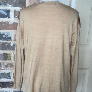 This simple, yet chic satin front top and sweater knit material will keep you comfy all day. Pair with jeans and heels for a dressed up look. Approximate measurements in photos. Excellent condition.