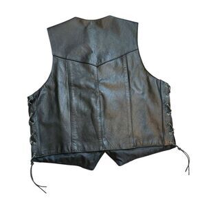 Vintage Vest Interstate Leather Motorcycle Mens XL Lace Sides Snap Button