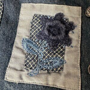Vintage Vest Napa Valley 90's Denim Patchwork Embroidery Crochet Detail Size M