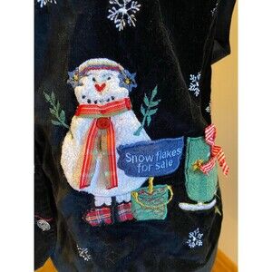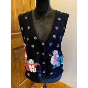 Vintage Vest Tantrums Christmas Holiday Snowmen Velvet Front Womens Size XL