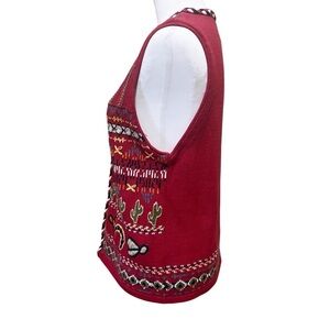 Vintage Vest Womens Medium RedHand Embroidered Cowboy Western Cactus Zip Front