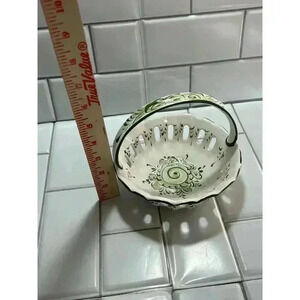 Vintage Vestal Bowl Basket Made In Portugal Numbered 94/2 Hand Painted Porcelain