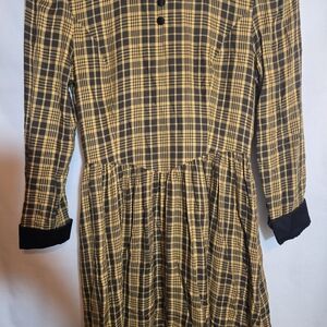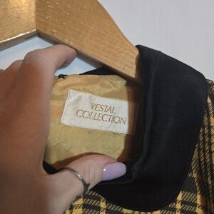 Vintage Vestal Collection Black Mustard Satin Cuffs Collared Midi Dress Small