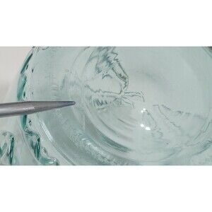 Vintage Vetreria Etrusca Pitcher Thick Green Glass Raised Palm Trees Italy READ