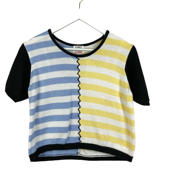 Vintage Via Italia Sweater Womens Medium Short Sleeve Cropped Striped Hand Comb