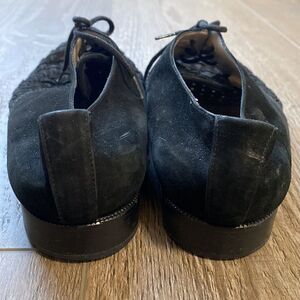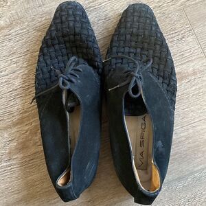 Vintage Via Spiga Black Suede Basket Weave Lace up Pointed Toe Oxford Loafers